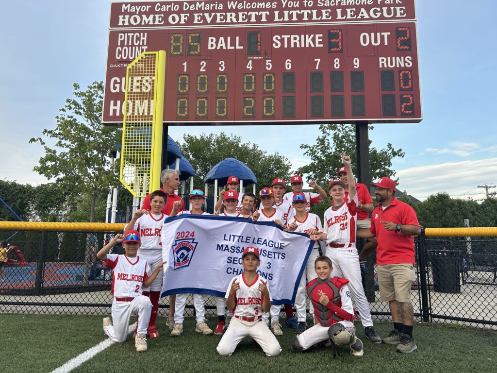 MELROSE — Last Saturday night, the Melrose 12-year-old Williamsport Little League team won the Section 3 title as they edged Somerville 2-0 at Sacramone Park in Everett (all four Sectional games were held there).