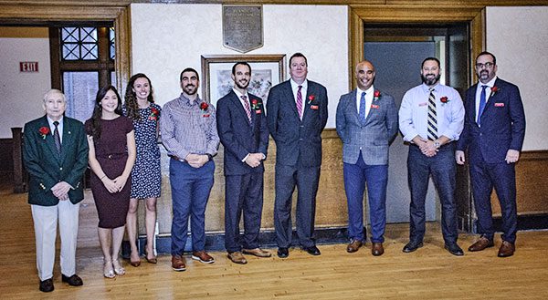 INDIVIDUAL HOF inductees honored (from left): from left John Titus, Annalisa DeBari, Olivia Downey, Zeke Vainer, Joe Musselman, Jim Slattery, Henry Turner, Steve Mulvihill and Peter Christopher. Missing from photo: Jim McSweeney. (Steve Karampalas photo)