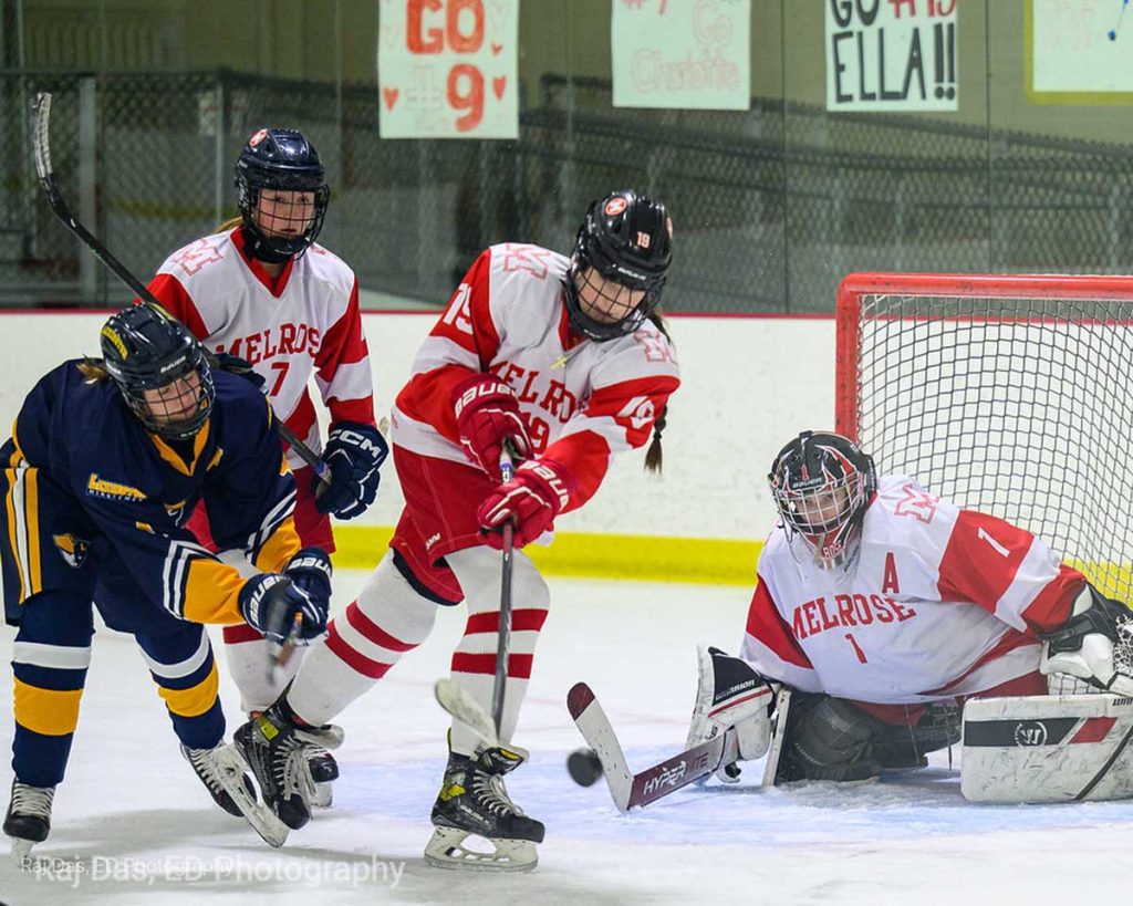 MELROSE—The Melrose High girls’ hockey team has been preparing for their highly anticipated playoff opener this week as they are (at press time) scheduled to travel to Bourne to face Sandwich at Gallo Arena on Thursday, Feb. 27, at 5:10 p.m. in round one of Div. 2 play.