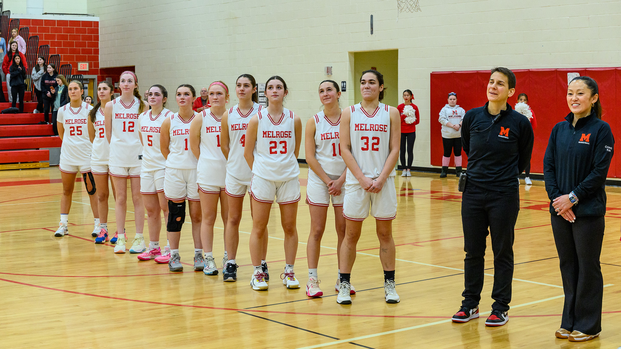 Melrose began ML Freedom league play on Jan. 5 when they lost to league rival Burlington, 47-33, in an otherwise competitive game. Says the coach, “We were disappointed as we felt the game was winnable. On some nights our goal is to compete, defend, and keep a key player under 10 points. We let their pressure 1-3-1 defense get to us and lost our confidence. Burlington is talented and they play great defense. That said, we feel we have a strong chance to win next time.”