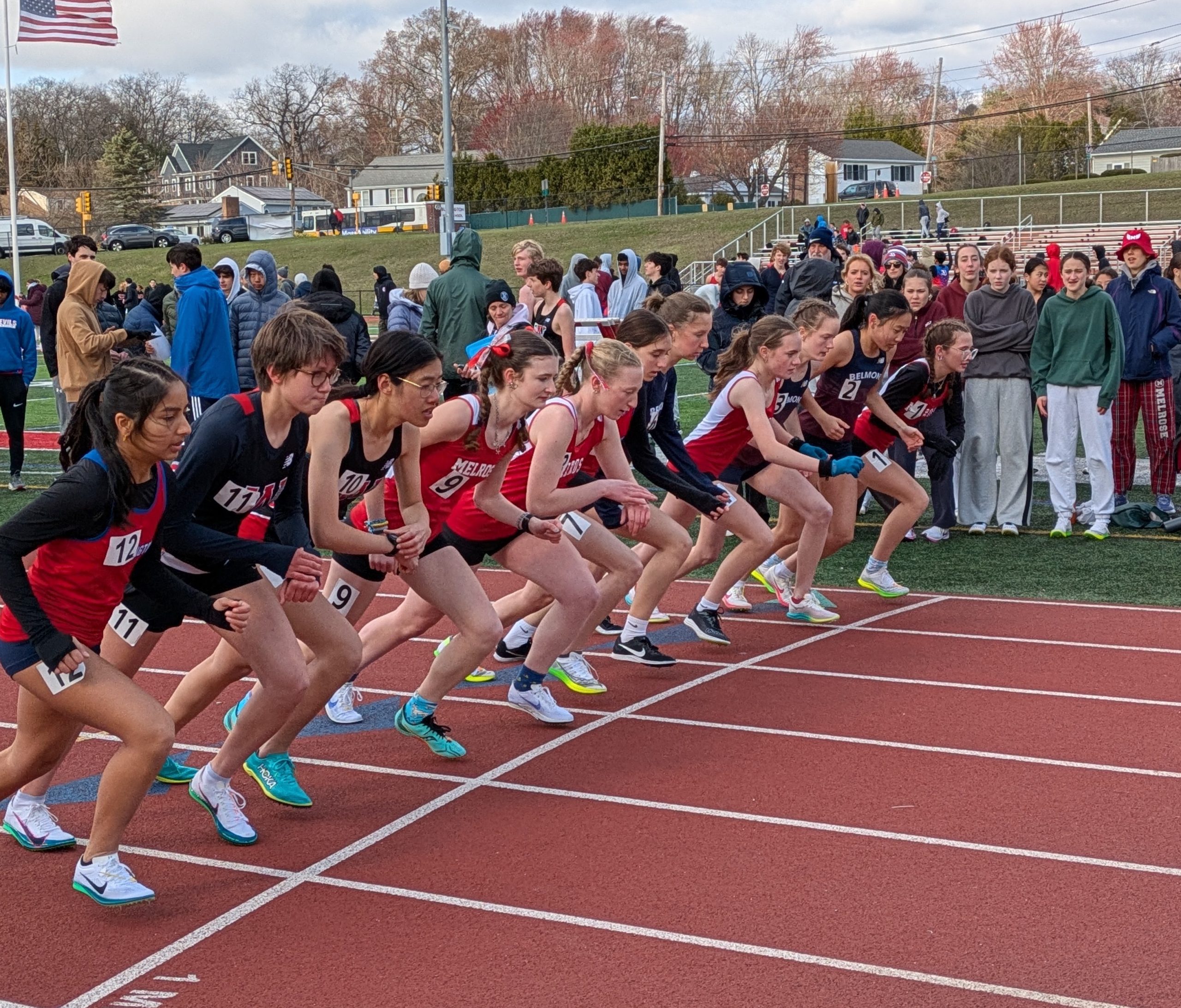 MELROSE—The Melrose High girls outdoor track team kicked off their spring season with an impressive 87-49 win over Burlington on the road on April 8, and, at press time, were poised to battle arch rival Wakefield on April 16 to earn a distinctive edge in the ML Freedom League.