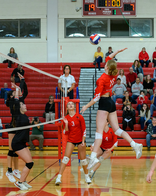 THIS WEEK’S Melrose High School Athlete of the Week helped the Melrose High volleyball team sweep league rivals Woburn and Wakefield with a massive 34 combined kills, including 19 against the Woburn Tanners. Sabine Wenzel leads Melrose in kills this year and is helping the team reach a current 12-2 record and 25th straight playoff appearance. Congrats to Sabine and the entire MHS volleyball team as they journey towards another deep playoff run. (photo by Raj Das , www.edphotos.com)