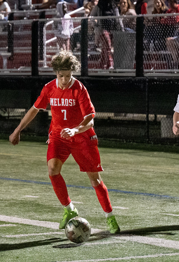 Boys Soccer Senior Captain AMIR LAHKIKY is our MHS Athlete of the Week. Amir had a hat trick in his team’s 3-0 season opener win against Reading, and days later, scored both goals in Melrose’s 2-0 win against Watertown, to help Melrose start 2-0 to the season. Congrats to senior captain Amir Lahkiky and the entire Melrose boy’s varsity soccer squad for their winning debut. (photo by Raj Das edphotos.com)