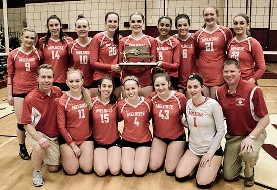 •Melrose High volleyball reclaims Div. 2 North title. Melrose became Div. 2 North champions after defeating fourth-ranked Danvers, 3-1, at the Div. 2 North Sectional Finals at Whittier Tech in Haverhill. It represented the team’s eighth Div. 2 North title in 15 seasons. They advanced to State Finals with a 24-2 record, pitted against Westboro, and aiming for their second state championship since 2012. Melrose had a 2-0 lead and needed just one more set to become state champions when the unfathomable happened (a 3-2 loss). And while the finish was stomach churning, in 2011 Melrose also lost at state finals only to win it a year later. For her efforts, Lily Fitzgerald was named MVP and an All Scholastic/All State player.
