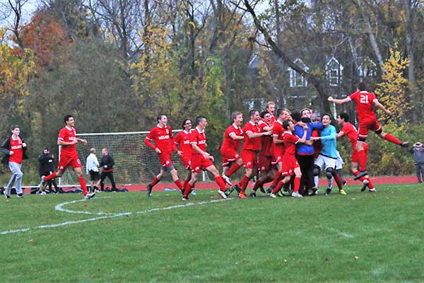 •Boys soccer advances to Div. 3 North finals. The Melrose Red Raider boy’s soccer team punched their ticket to Div. 3 North playoffs for the first time in a decade by knocking off #2 seed Pentucket, 1-0, in thrilling a PK shoot out after a scoreless double overtime at Pentucket Regional. Melrose battled to a 0-0 draw and, after two overtime periods, were forced to line up for a penalty kick shootout during a rainy and muddy slugfest. Melrose seniors Pete Wiesen (league MVP), Sava Vlajkovic and Owen Thorsteinsson got the job done, outshooting Pentucket, 3-2, while Melrose Red Raider Jared Dowell had the game of his career, fending off a high shot by Pentucket’s Jake Messier to clinch victory. The result was one of the best soccer games ever played by Melrose High.