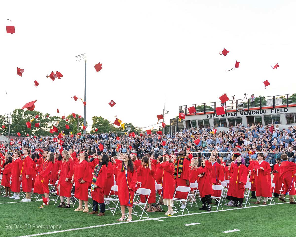 THE CLASS OF 2024 experiences the joy of graduating last Friday night at Fred Green Memorial Field. (Photo by Raj Das, edphtotos.com)