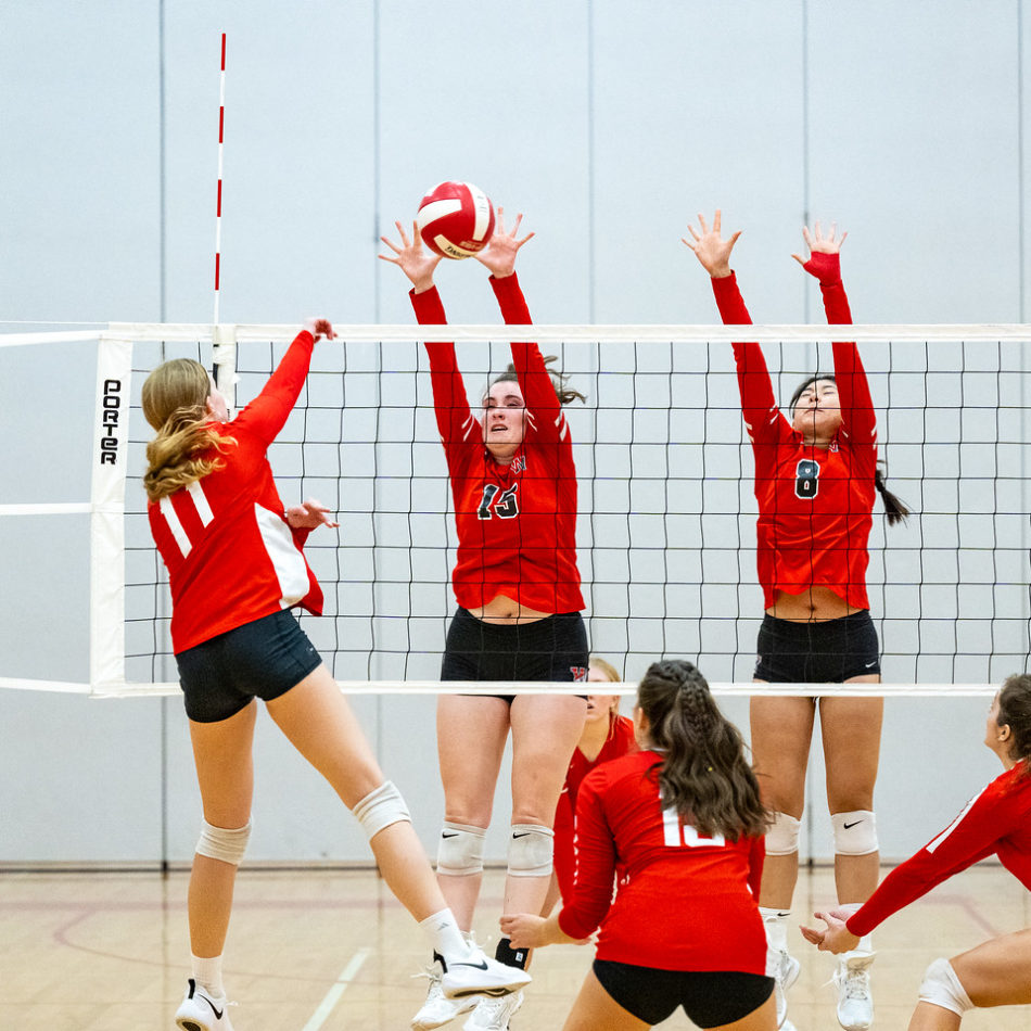Libero Emma Desmond was particularly strong in the Burlington effort, fending off a few powerful Red Devil hitters with 24 serve receipts an 11 digs. Ruth Breen and Ava McSorley also shined at the serving line.