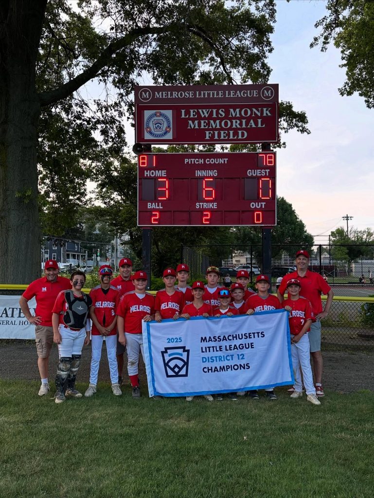 MELROSE — The Melrose 12-year-old Williamsport Little League baseball team cliched the District 12 title on July 9 as they shut out guest South Boston, 3-0, at Lewis Monk Field.