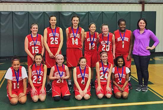 PELHAM, NH—The Melrose Middle School’s seventh-grade girls’ basketball team finished their winning season as champions of the River Valley Tournament when they swept the field in their playoff bracket. The squad fought in a weekend battle in Pelham, NH and prevailed in three games unbeaten.