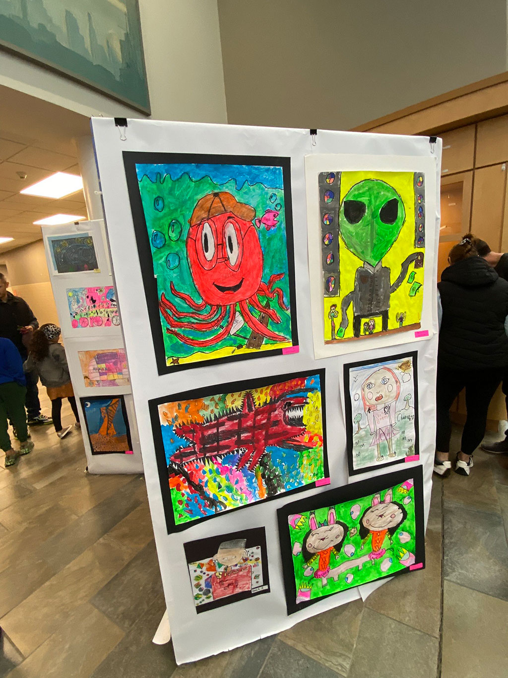 The month-long art show honored student work in grades K-12 and began with an opening night reception that featured several performances by performing arts students.
