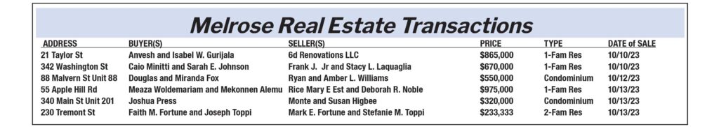 Melrose Real Estate Transactions published November 3, 2023