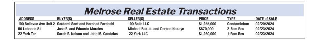 Melrose Real Estate Transactions published March 15, 2024