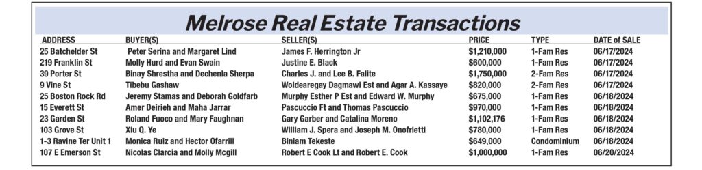 Melrose Real Estate Transactions published July 12, 2024