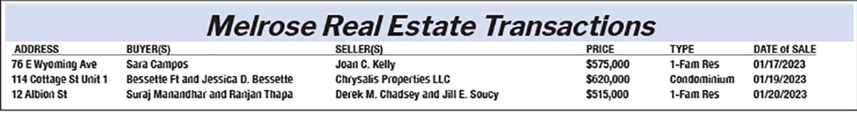 Melrose Real Estate Transactions February 10, 2023
