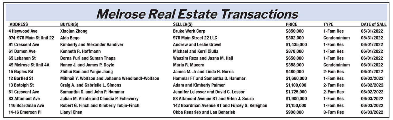 Melrose Real Estate Transactions published June 23, 2022