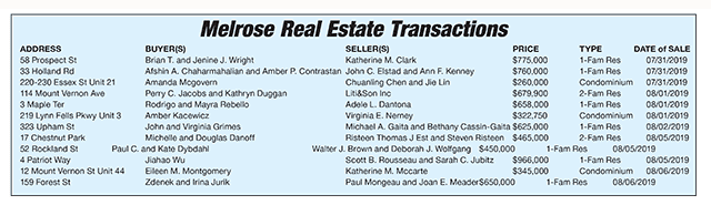 Melrose Real Estate Transactions published August 23, 2019