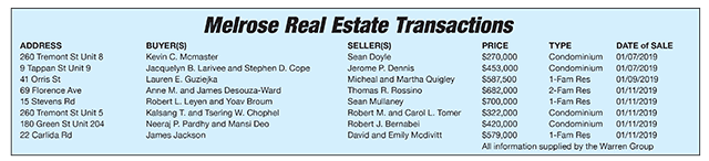 Melrose Real Estate Transactions published February 1, 2019