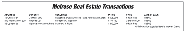 Melrose Real Estate Transactions published February 15, 2019