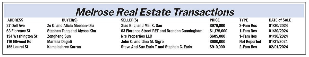 Melrose Real Estate Transactions published February 23, 2024