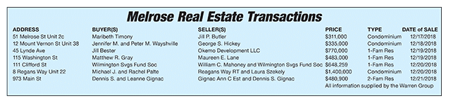 Melrose Real Estate Transactions published January 11, 2019