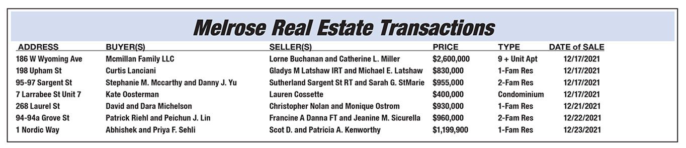 Melrose Real Estate Transactions published January 14, 2022