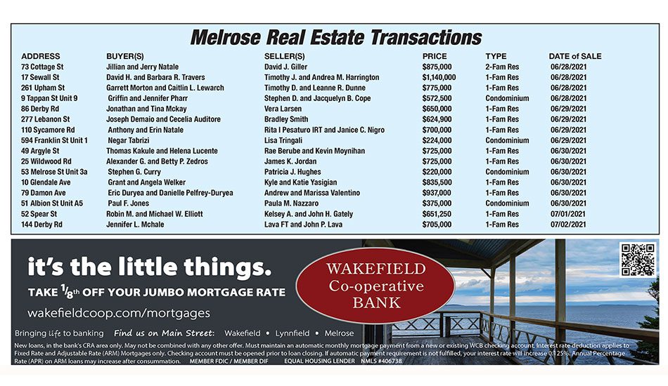 North Reading Real Estate Transactions published July 22, 2021
