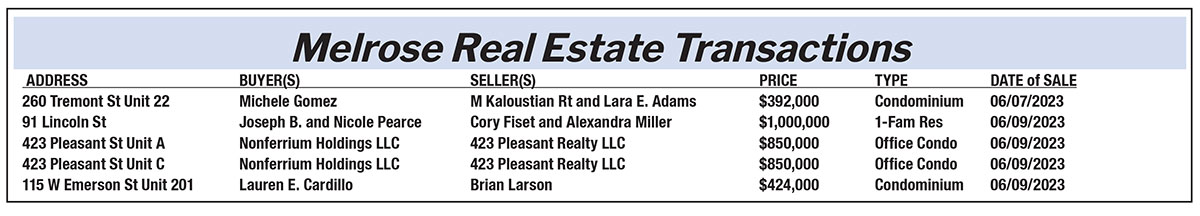 Melrose Real Estate Transactions published June 30, 2023