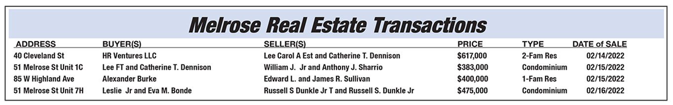 Melrose Real Estate Transactions published March 11, 2022