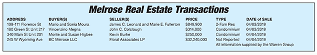 Melrose Real Estate Transactions published May 24, 2019