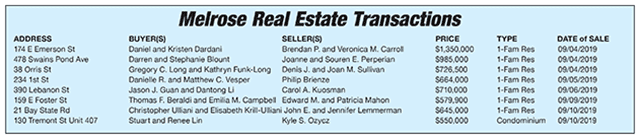 Melrose Real Estate Transactions published September 27, 2019