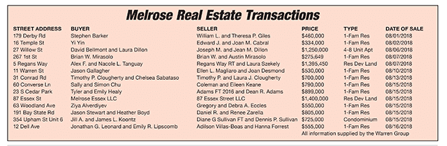 Melrose Real Estate Transactions published September 7, 2018