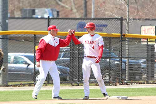 Coach Hirschfeld is quite happy with his pitching staff so far this season, but would like Melrose bats to come around. “We’re still shy of that one big hit that really opens up a game,” he noted.