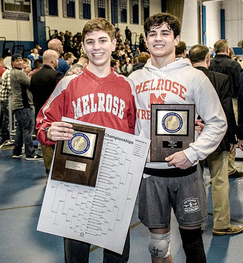BROTHERS IN arms. Hunter Adrian (left) and Sean Herbert both medaled at the New England Finals last week. (Steve Karampalas photo)