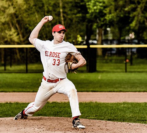 It was a super performance from senior captain Harry Kelley in his final high school appearance on the mound for MHS. The All-Conference pitcher fanned 7 and gave up just one run and 5 hits. “Harry was dialed in today and he was very effective in the zone,” says Melrose coach Scott Searles. “For sure, one of his best starts of the season.”