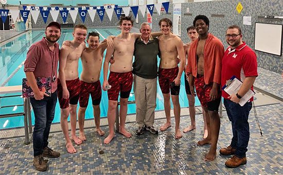 MELROSE—The Melrose Red Raider swim team had plenty of reason to celebrate on Thursday, January 23 when they hosted Senior Night at the Melrose YMCA and then swam to their first victory of the season in a 51-43 win over Wakefield/Lynnfield.