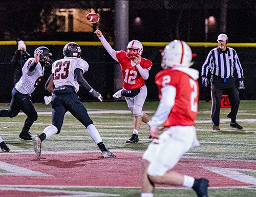 “We knew this was going to be a grind,” said Morris. “They (Marblehead) are always well-coached and are a good team with a lot of weapons. But our defense came up big after that first series. They’ve been doing it all season,” Morris said. “We’re primarily a run-oriented team, but we were able to throw the ball a little bit tonight in some key situations. I think they were very geared up to stop our run and keyed in on Cuse [Cusolito] so that opened up the pass.”