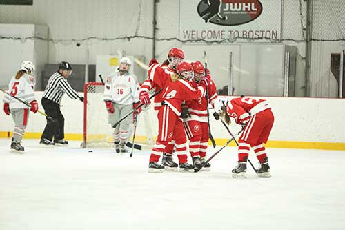 Melrose also tied Winchester, 2-2, on January 30, earning a point towards playoff qualification. The Lady Raiders saw goals from Maggie Doyle and Maggie O’Donnell. “It was a very close game throughout,” says Sorrenti. “The pivotal moment was Maggie Doyle’s shorthanded goal. She intercepted a bad break out pass in the high slot and closed quickly. It was huge for our team.”