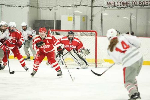 MELROSE—The Melrose High girls’ hockey team is close to punching a ticket to a postseason thanks to back-to-back wins over Belmont and Burlington last week. The reigning Freedom League champs are back on top of the league at 6-1-1 (7-3-1 overall). To be where they are now—a year after heavy senior loss and a coaching change—is nothing short of remarkable.