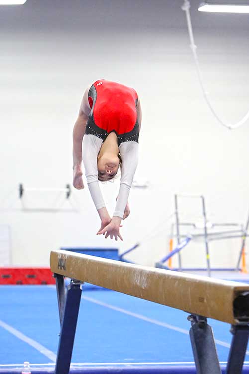 While Melrose struggled in bars, (some falling off the apparatus) they earned a solid 9.175 score from Katie Wright, which helped keep Melrose ahead of most of the pack after three events at 101.825.