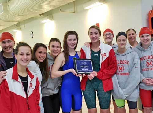 MELROSE—The Melrose Lady Raider swim team earned one of the MIAA’s most prestigious honors on Saturday when they took home the Div. 2 MIAA Sportsmanship Award.
