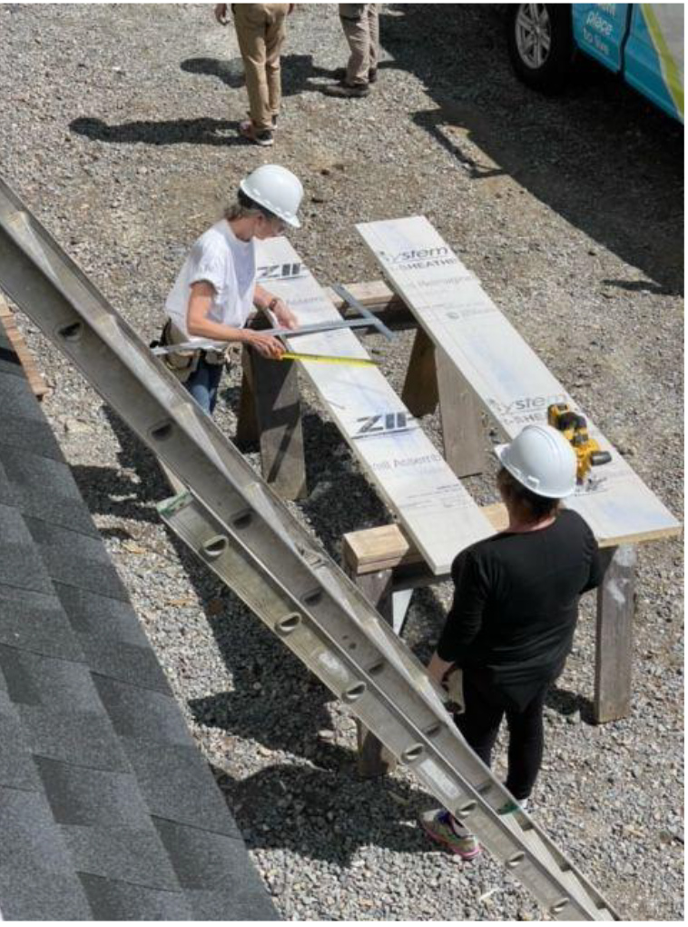 Rotary carpenters hammered and measured and cut and glued as well as going up and down ladders. The folks from Habitat Greater Boston were kind enough to educate us on the energy efficient materials they use to keep hot water and heat costs down.