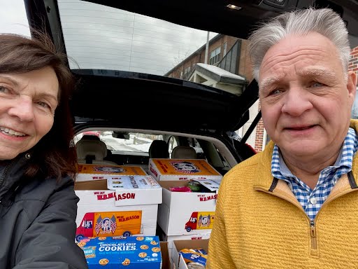THE FOOD DRIVE’S volunteers Lisa and Rob Tullis at Roosevelt Elementary