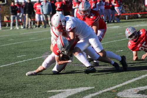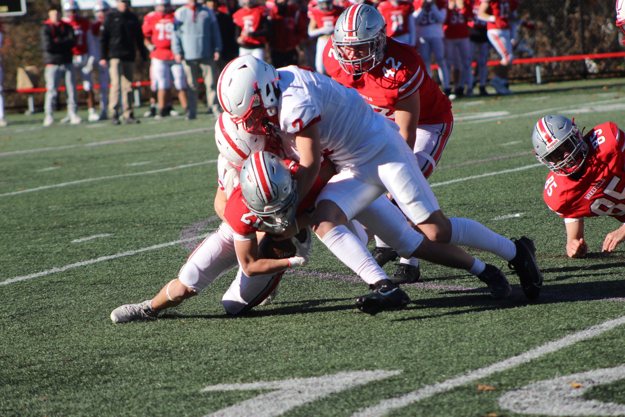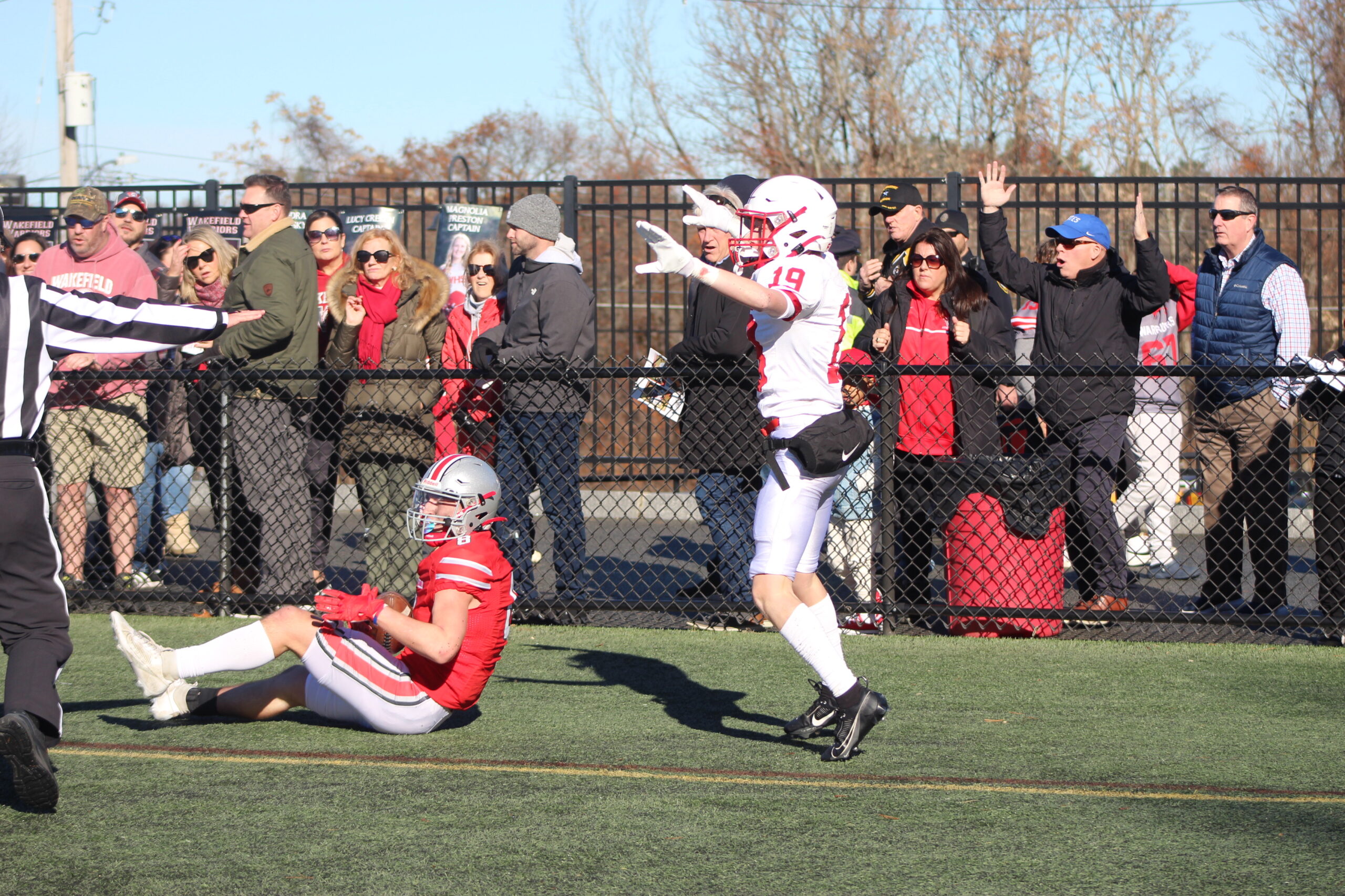 It came down to the final play of the game: a 4th-and-goal situation on the Wakefield 5-yard line, with Melrose forced to attempt a touchdown win (down four) with 24 seconds left in the game. Melrose QB Connor Brophy tried to connect with receiver Ben Cassavoy but was picked off in the end zone by Wakefield’s Myles Sanchez to win the contest. Melrose had started their last drive with 1:49 left on the clock.