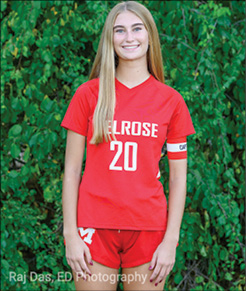 THIS WEEK’S Melrose High Athlete of the Week has been a top player for the MHS girls’ soccer team for several years, and this season is no different. Senior captain midfielder Sophie McElligott has been a key part to the success of the MHS girls’ soccer team, who are hoping to clinch a league title in the coming week. The former EMass All Star player came up big against Arlington and Wakefield with 2 assists and a goal against the Warriors and an assist during Melrose’s 1-1 tie against the Arlington Spy Ponders. Her work has helped Melrose emerge as a league favorite on the cusp of playoff qualification. Congrats to Sophie and the entire Melrose squad for a winning week!