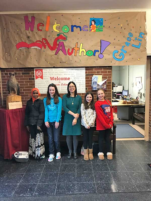 CHILDREN’S AUTHOR Grace Lin (center) visited the students at the Hoover School on Monday, March 5. (Amy Kamosa Photo)