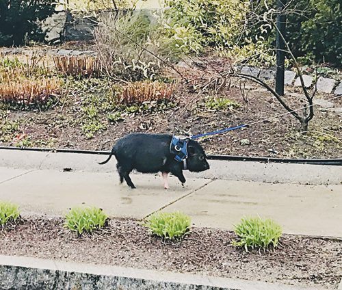 PHOTO: Leisurely stroll April 2, 2020 ZEN the pig was spotted being walked down Summer Street on March 29. (Courtesy Photo) Published April 3, 2020
