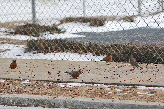 THESE ROBINS at the Common forage for something to eat. (Donna Larsson Photo)
