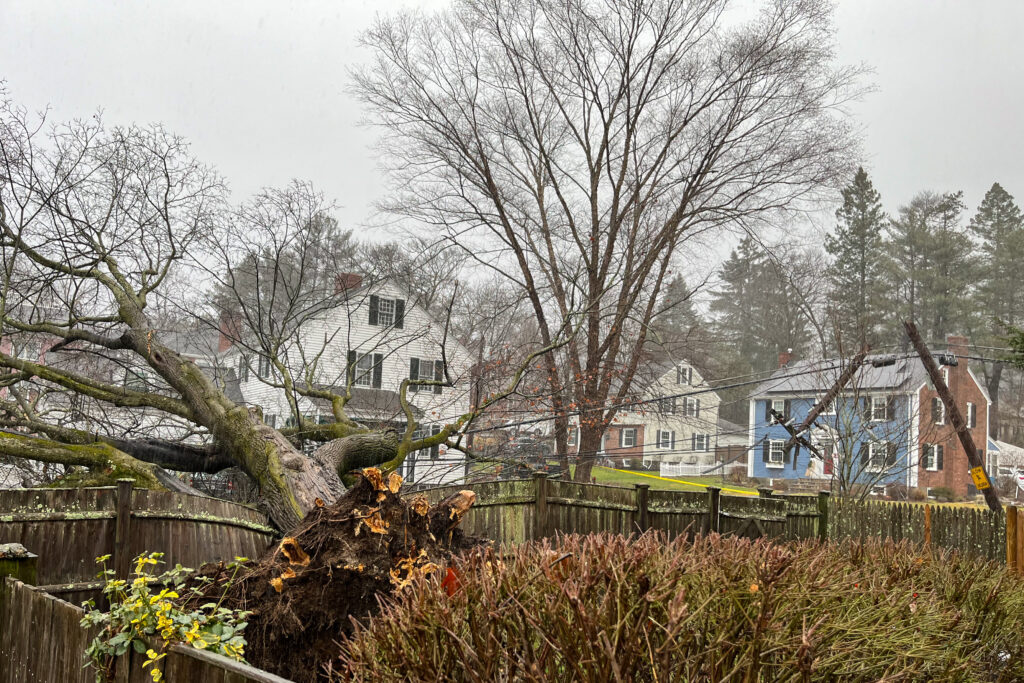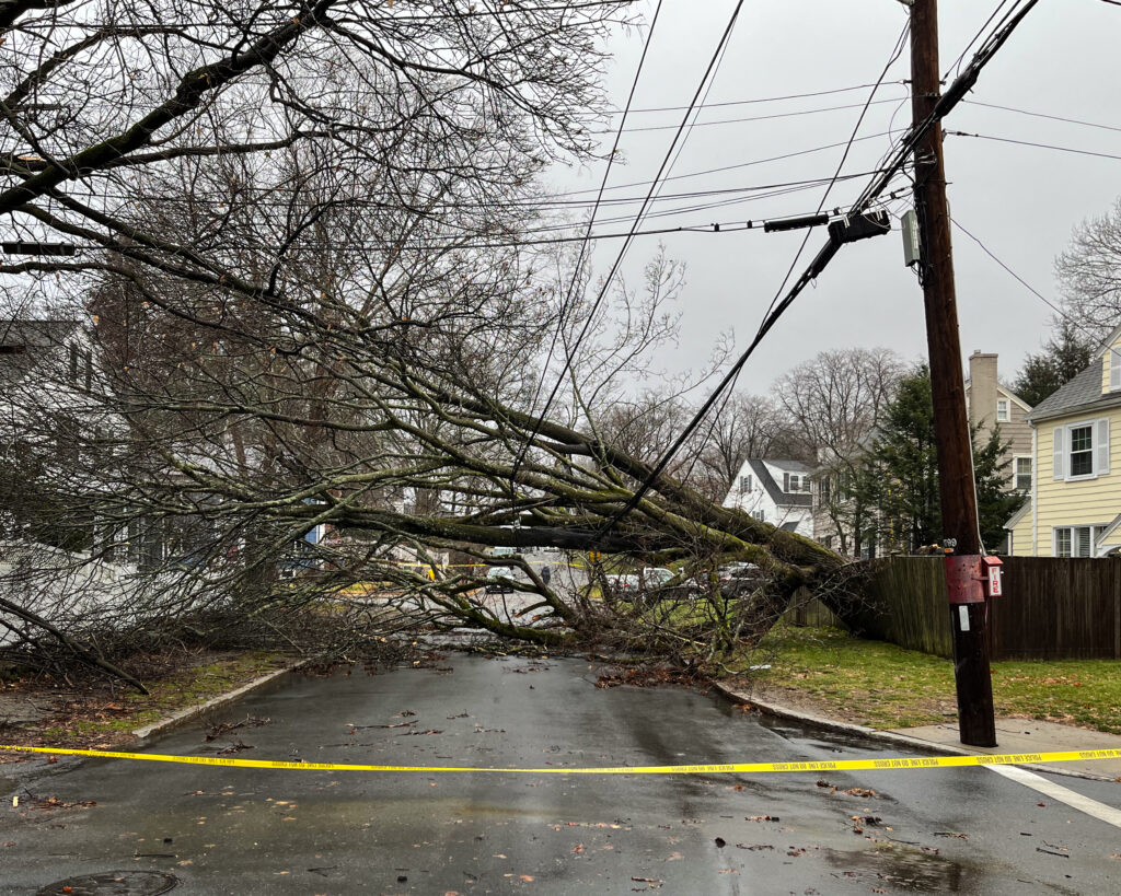A POWERFUL STORM moved into the area Sunday night and grew stronger with time, downing trees like this one on Porter Street, which knocked out power. (Photo by Raj Das, edphotos.com)