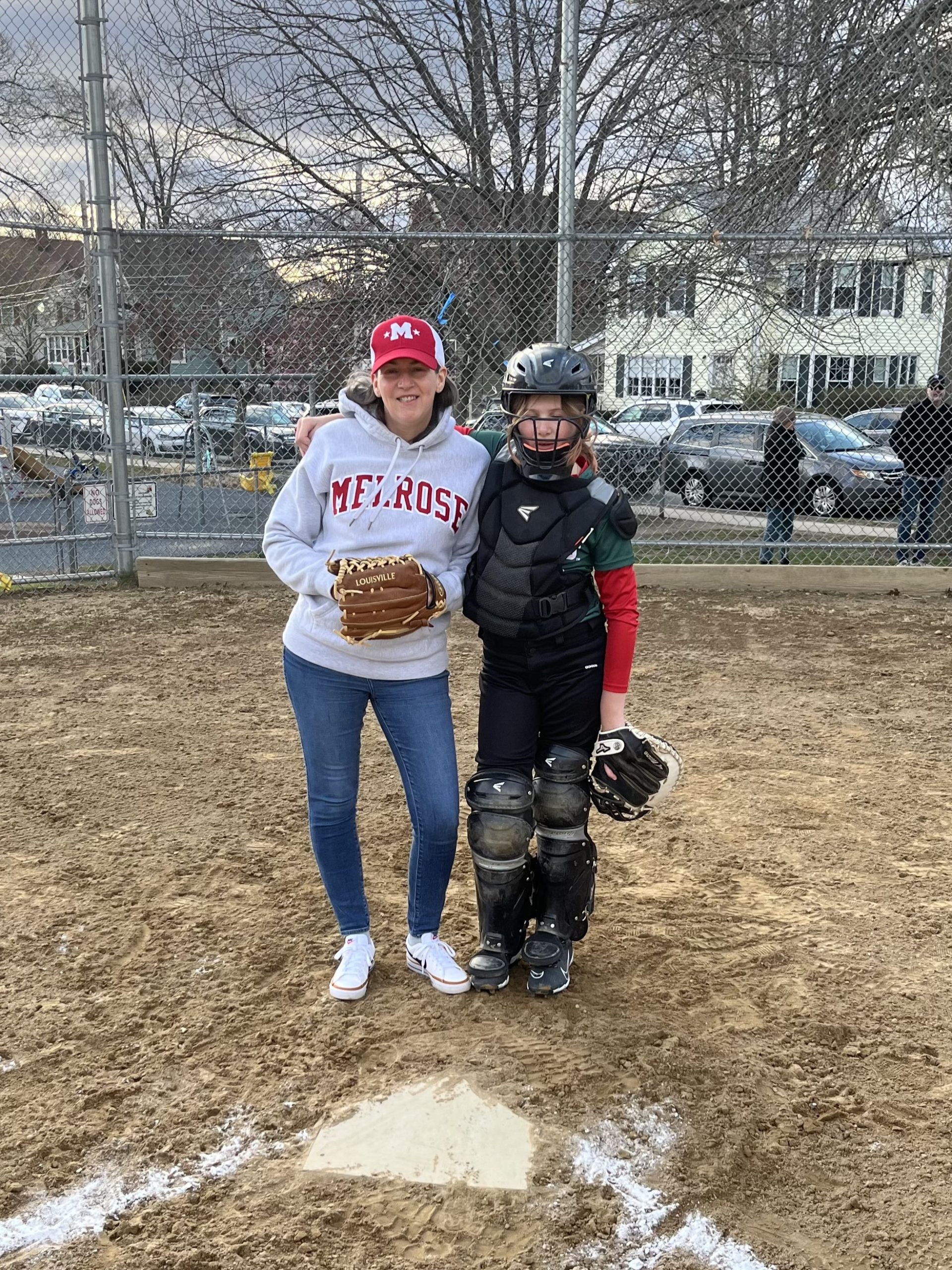 Melrose Youth Softball kicked off their season this week. Jen McAndrew from the School Committee threw out the 1st pitch at our Opening Day game. She’s pictured with Addy Gill, 5th grader at Horace Mann. (courtesy photo)