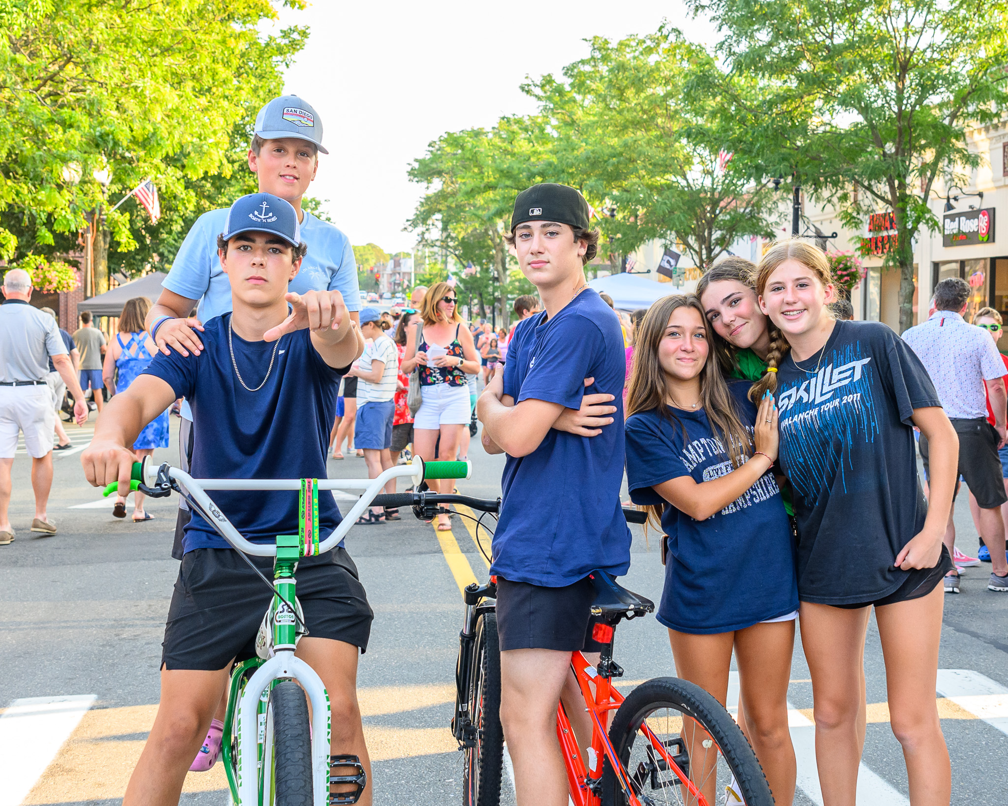 Taking it all in August 4, 2023 MAIN STREET IS closed to motor vehicles during the Summer Stroll, and Friday night these young people met up downtown to take in the scene. (Photo by Raj Das, edphotos.com)